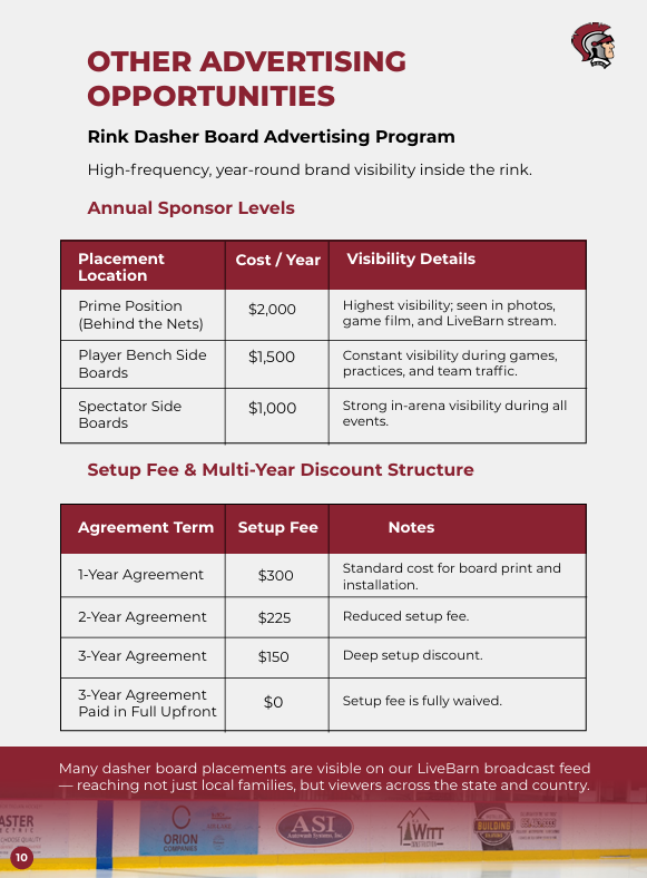 • Rent ice to nearby youth programs, providing ongoing operational revenue.